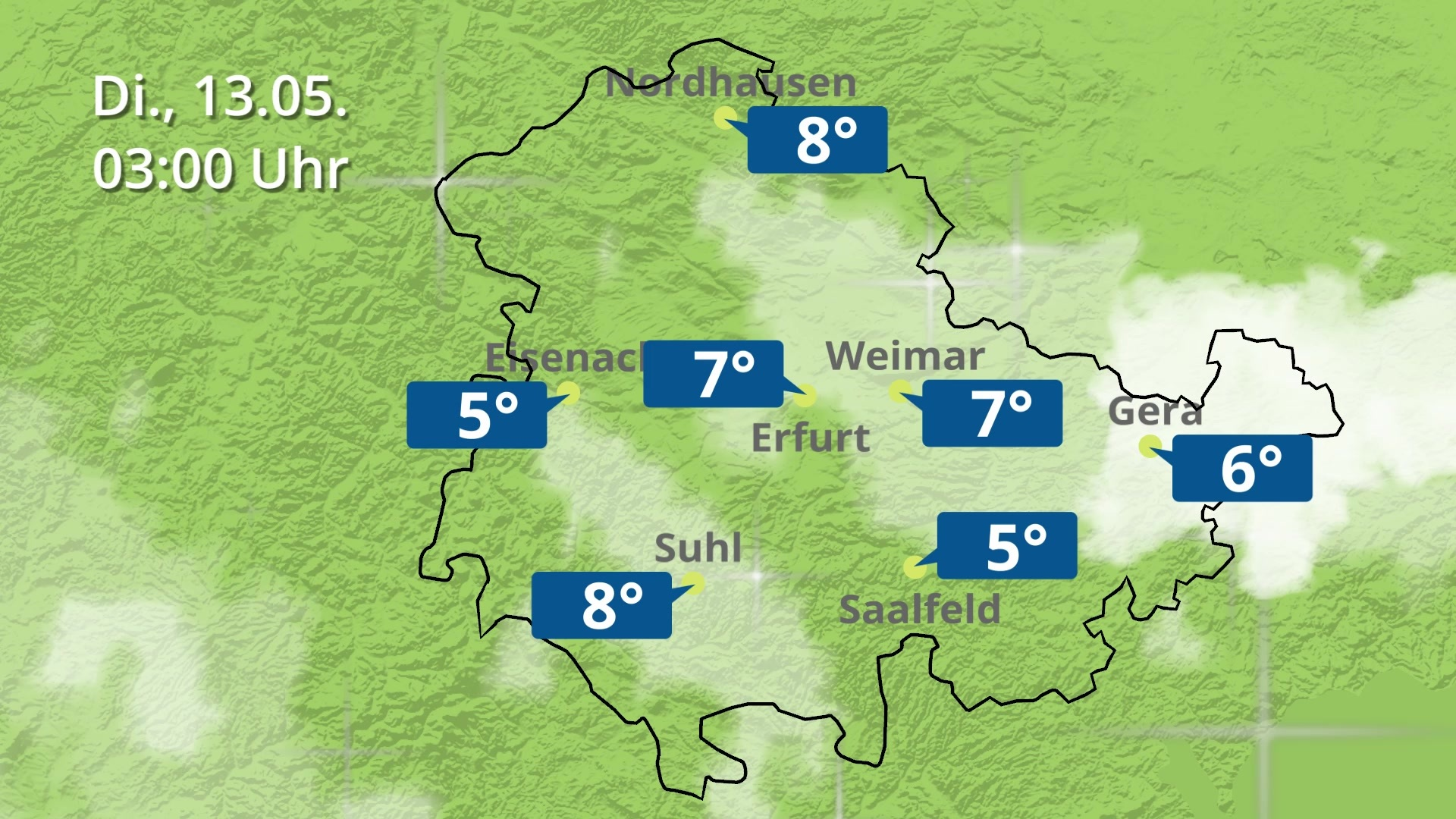 Regen und Wolkenfilm für Erfurt, Gera und Eisenach Thüringen Wie